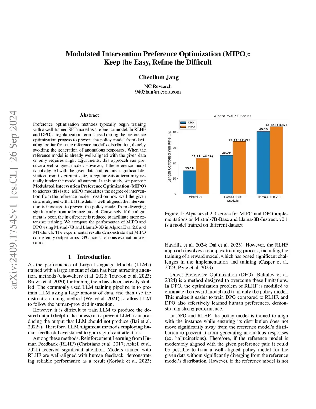 Preference optimization methods typically begin training with a well-trained SFT model as a reference model. In RLHF and DPO, a regularization term is used during the preference optimization process to prevent the policy model from deviating too far from the reference model's distribution, thereby avoiding the generation of anomalous responses. When the reference model is already well-aligned with the given data or only requires slight adjustments, this approach can produce a well-aligned model. However, if the reference model is not aligned with the given data and requires significant deviation from its current state, a regularization term may actually hinder the model alignment. In this study, we propose \textbf{Modulated Intervention Preference Optimization (MIPO)} to address this issue. MIPO modulates the degree of intervention from the reference model based on how well the given data is aligned with it. If the data is well-aligned, the intervention is increased to prevent the policy model from diverging significantly from reference model. Conversely, if the alignment is poor, the interference is reduced to facilitate more extensive training. We compare the performance of MIPO and DPO using Mistral-7B and Llama3-8B in Alpaca Eval 2.0 and MT-Bench. The experimental results demonstrate that MIPO consistently outperforms DPO across various evaluation scenarios.