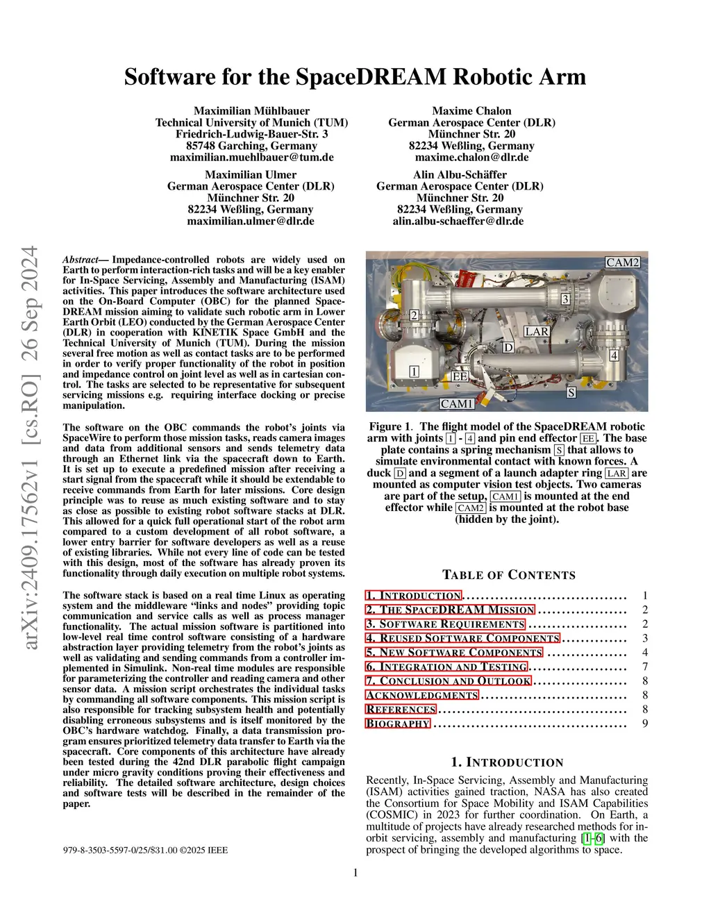 Software for the SpaceDREAM Robotic Arm