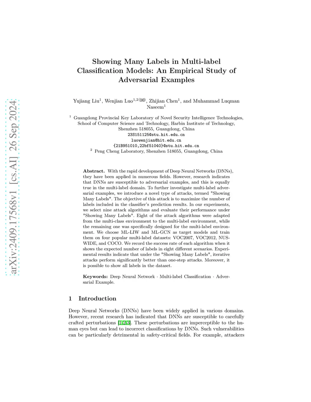 With the rapid development of Deep Neural Networks (DNNs), they have been applied in numerous fields. However, research indicates that DNNs are susceptible to adversarial examples, and this is equally true in the multi-label domain. To further investigate multi-label adversarial examples, we introduce a novel type of attacks, termed "Showing Many Labels". The objective of this attack is to maximize the number of labels included in the classifier's prediction results. In our experiments, we select nine attack algorithms and evaluate their performance under "Showing Many Labels". Eight of the attack algorithms were adapted from the multi-class environment to the multi-label environment, while the remaining one was specifically designed for the multi-label environment. We choose ML-LIW and ML-GCN as target models and train them on four popular multi-label datasets: VOC2007, VOC2012, NUS-WIDE, and COCO. We record the success rate of each algorithm when it shows the expected number of labels in eight different scenarios. Experimental results indicate that under the "Showing Many Labels", iterative attacks perform significantly better than one-step attacks. Moreover, it is possible to show all labels in the dataset.
