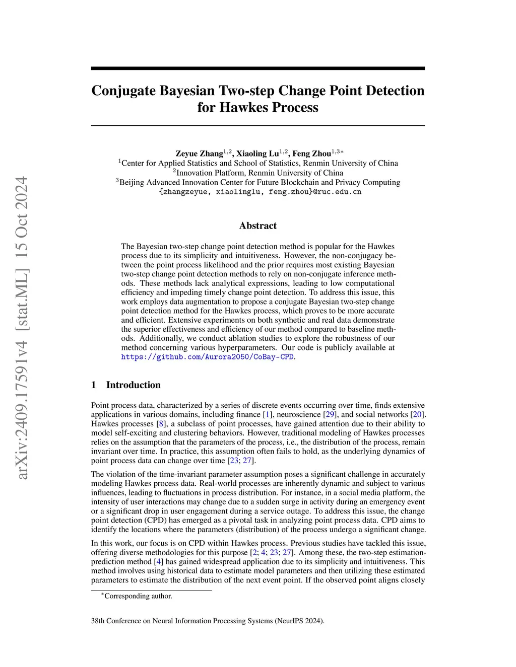 Conjugate Bayesian Two-step Change Point Detection for Hawkes Process
