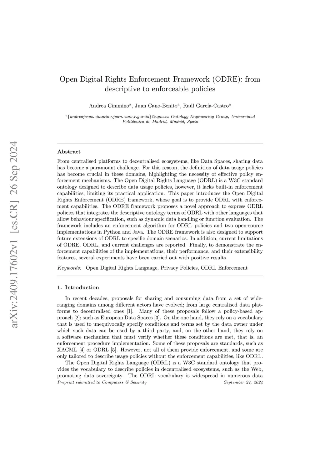 Open Digital Rights Enforcement Framework (ODRE): from descriptive to