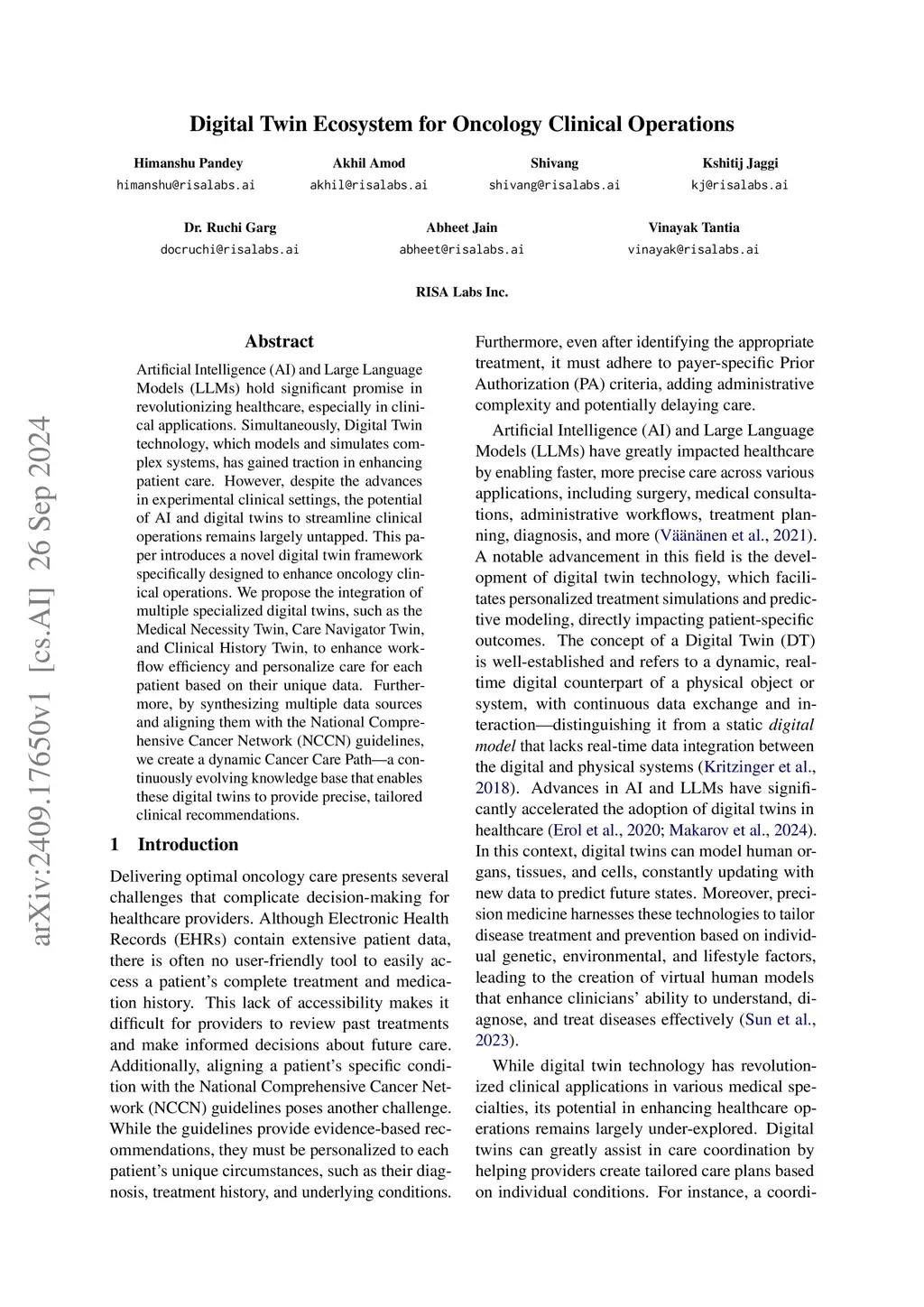 Digital Twin Ecosystem for Oncology Clinical Operations