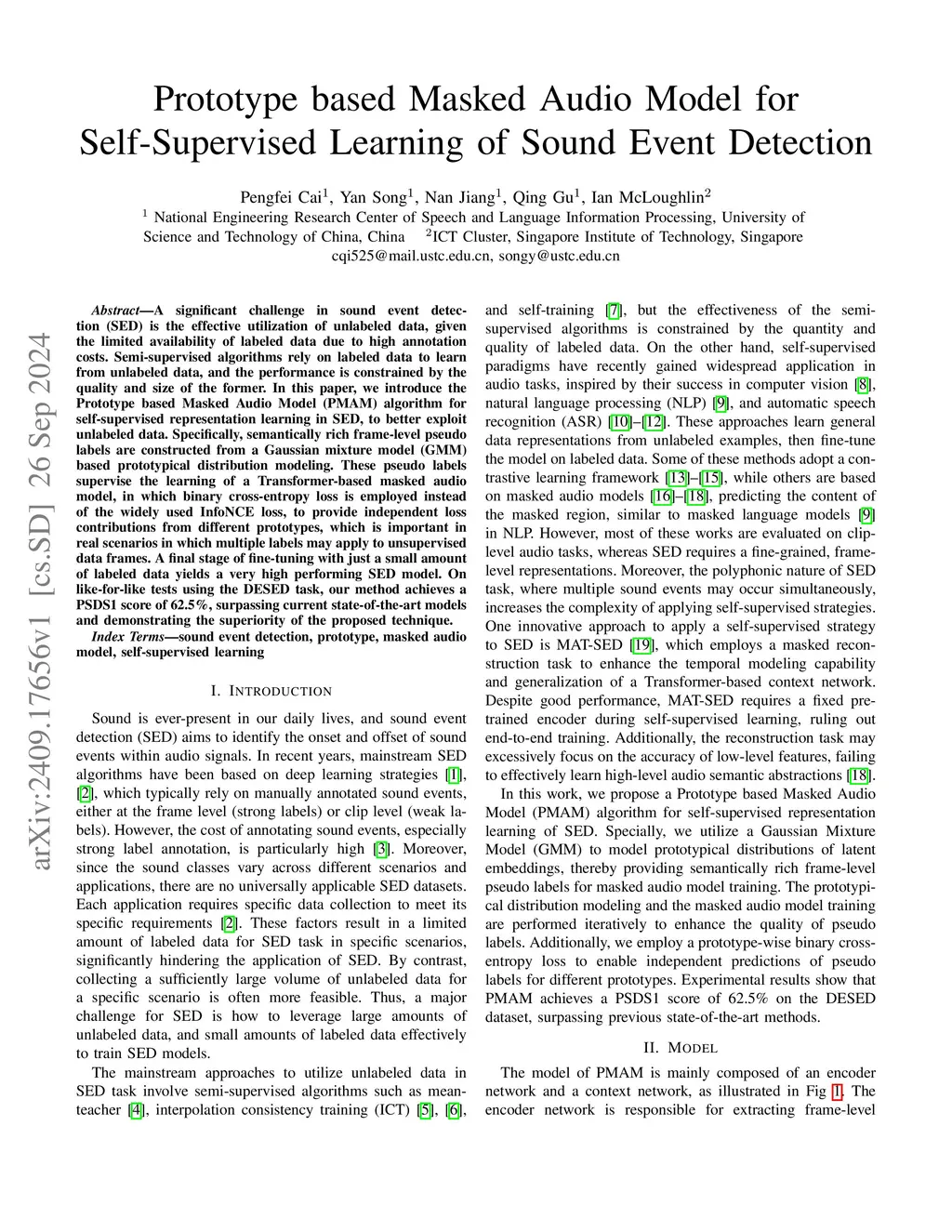Prototype based Masked Audio Model for Self-Supervised Learning of Sound