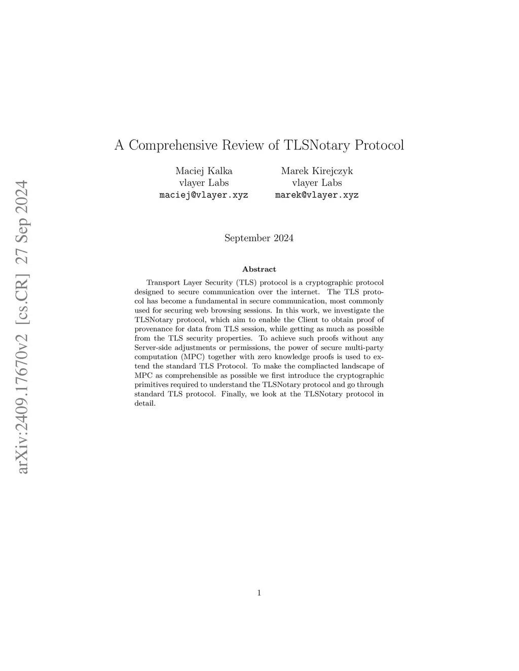 Transport Layer Security (TLS) protocol is a cryptographic protocol designed to secure communication over the internet. The TLS protocol has become a fundamental in secure communication, most commonly used for securing web browsing sessions. In this work, we investigate the TLSNotary protocol, which aim to enable the Client to obtain proof of provenance for data from TLS session, while getting as much as possible from the TLS security properties. To achieve such proofs without any Server-side adjustments or permissions, the power of secure multi-party computation (MPC) together with zero knowledge proofs is used to extend the standard TLS Protocol. To make the compliacted landscape of MPC as comprehensible as possible we first introduce the cryptographic primitives required to understand the TLSNotary protocol and go through standard TLS protocol. Finally, we look at the TLSNotary protocol in detail.