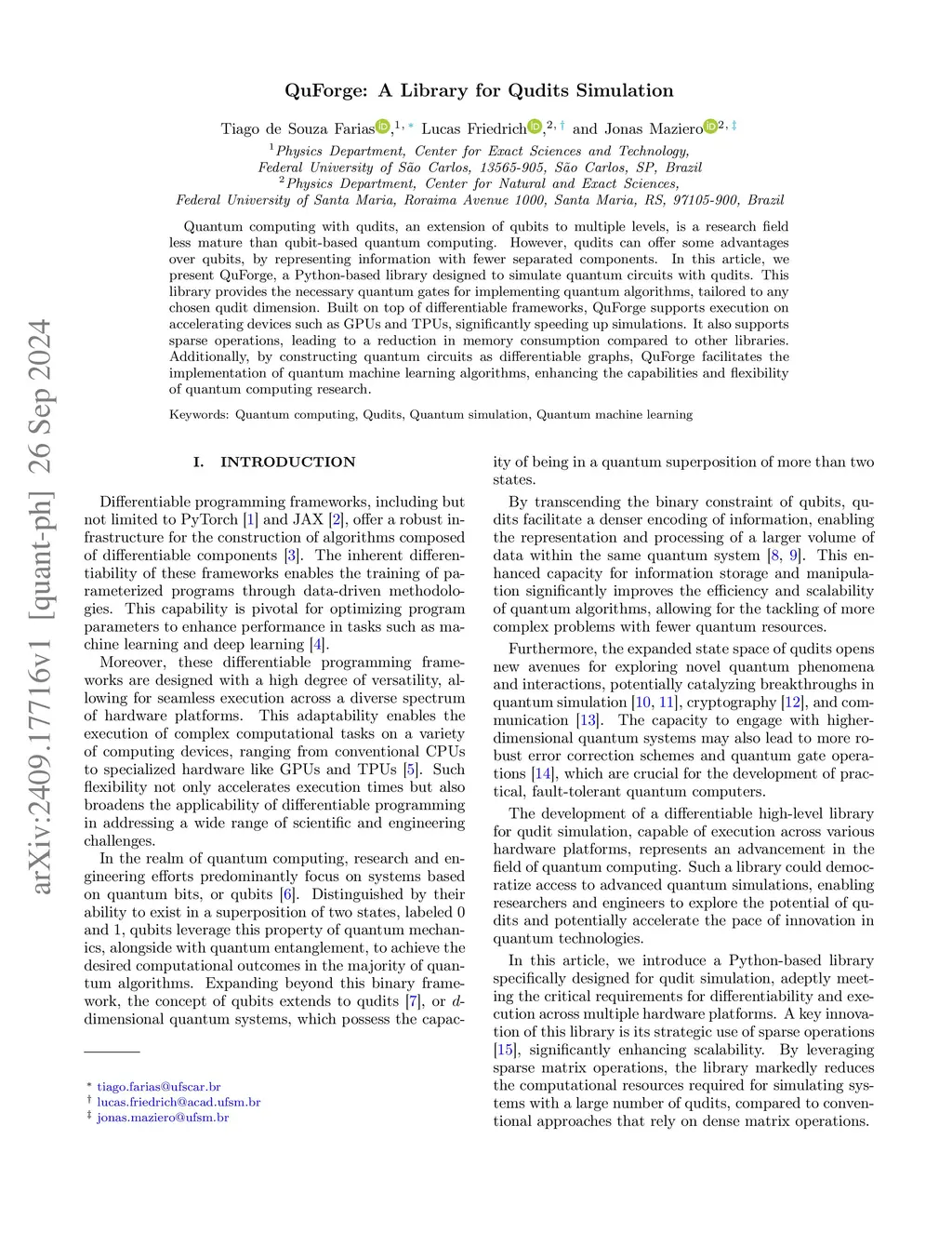 Quantum computing with qudits, an extension of qubits to multiple levels, is a research field less mature than qubit-based quantum computing. However, qudits can offer some advantages over qubits, by representing information with fewer separated components. In this article, we present QuForge, a Python-based library designed to simulate quantum circuits with qudits. This library provides the necessary quantum gates for implementing quantum algorithms, tailored to any chosen qudit dimension. Built on top of differentiable frameworks, QuForge supports execution on accelerating devices such as GPUs and TPUs, significantly speeding up simulations. It also supports sparse operations, leading to a reduction in memory consumption compared to other libraries. Additionally, by constructing quantum circuits as differentiable graphs, QuForge facilitates the implementation of quantum machine learning algorithms, enhancing the capabilities and flexibility of quantum computing research.