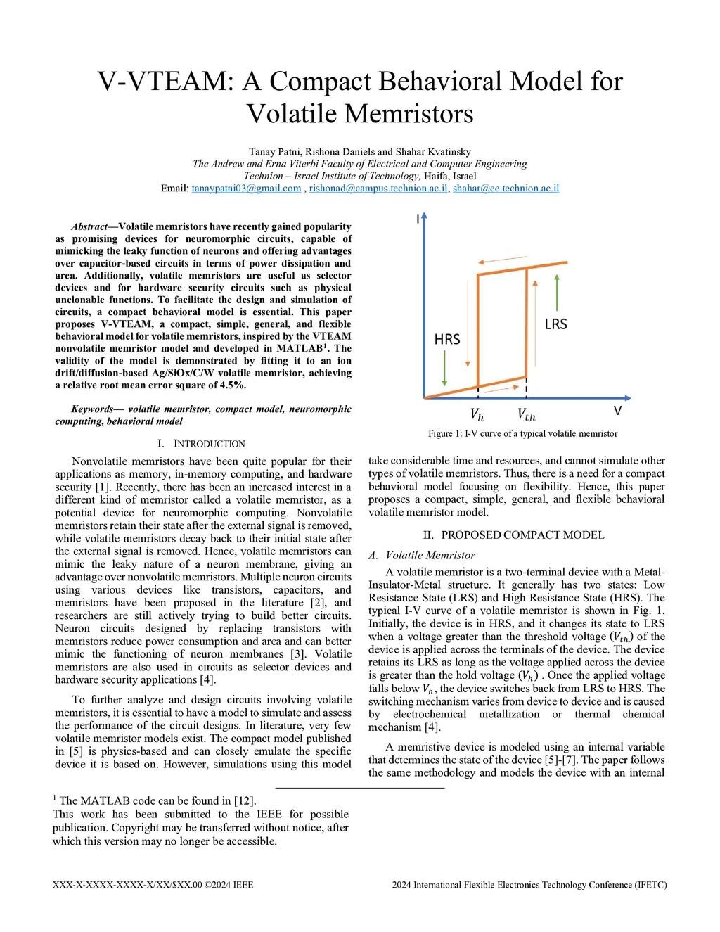 VVTEAM: A Compact Behavioral Model for Volatile Memristors