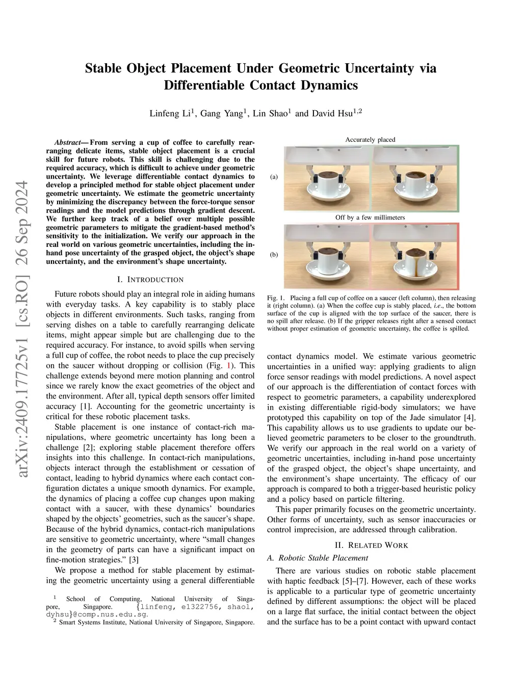 Differentiable Contact Dynamics for Stable Object Placement Under Geometric Uncertainties