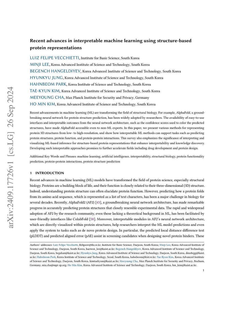 Recent advancements in machine learning (ML) are transforming the field of structural biology. For example, AlphaFold, a groundbreaking neural network for protein structure prediction, has been widely adopted by researchers. The availability of easy-to-use interfaces and interpretable outcomes from the neural network architecture, such as the confidence scores used to color the predicted structures, have made AlphaFold accessible even to non-ML experts. In this paper, we present various methods for representing protein 3D structures from low- to high-resolution, and show how interpretable ML methods can support tasks such as predicting protein structures, protein function, and protein-protein interactions. This survey also emphasizes the significance of interpreting and visualizing ML-based inference for structure-based protein representations that enhance interpretability and knowledge discovery. Developing such interpretable approaches promises to further accelerate fields including drug development and protein design.