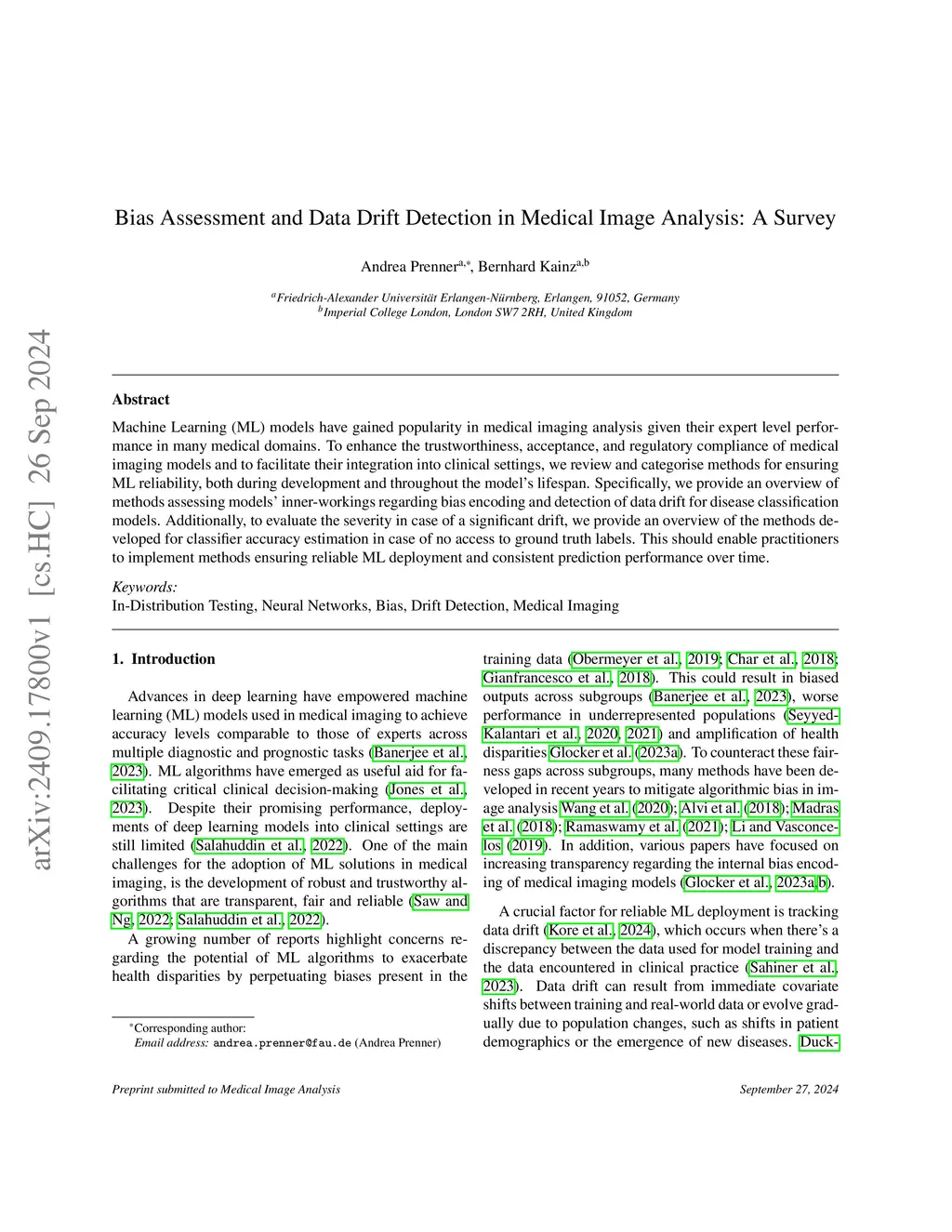 Bias Assessment and Data Drift Detection in Medical Image Analysis: A