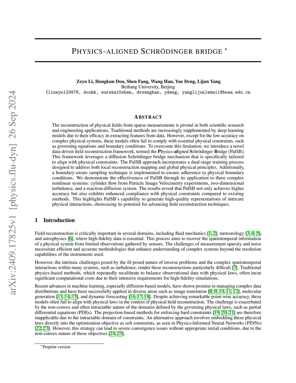 The reconstruction of physical fields from sparse measurements is pivotal in both scientific research and engineering applications. Traditional methods are increasingly supplemented by deep learning models due to their efficacy in extracting features from data. However, except for the low accuracy on complex physical systems, these models often fail to comply with essential physical constraints, such as governing equations and boundary conditions. To overcome this limitation, we introduce a novel data-driven field reconstruction framework, termed the Physics-aligned Schr\"{o}dinger Bridge (PalSB). This framework leverages a diffusion Schr\"{o}dinger bridge mechanism that is specifically tailored to align with physical constraints. The PalSB approach incorporates a dual-stage training process designed to address both local reconstruction mapping and global physical principles. Additionally, a boundary-aware sampling technique is implemented to ensure adherence to physical boundary conditions. We demonstrate the effectiveness of PalSB through its application to three complex nonlinear systems: cylinder flow from Particle Image Velocimetry experiments, two-dimensional turbulence, and a reaction-diffusion system. The results reveal that PalSB not only achieves higher accuracy but also exhibits enhanced compliance with physical constraints compared to existing methods. This highlights PalSB's capability to generate high-quality representations of intricate physical interactions, showcasing its potential for advancing field reconstruction techniques.