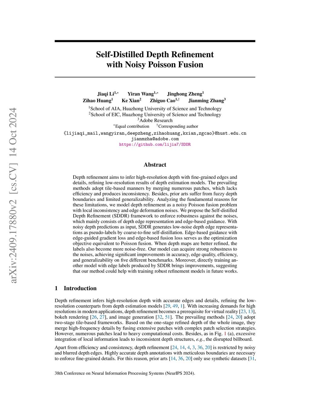 Self-Distilled Depth Refinement with Noisy Poisson Fusion