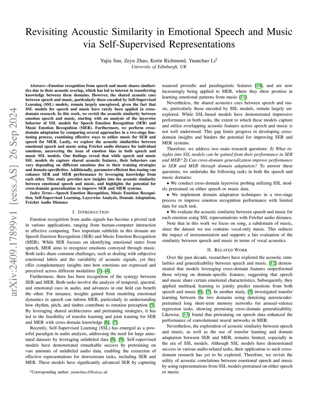 Exploring Acoustic Similarity in Emotional Speech and Music via Self-Supervised Representations