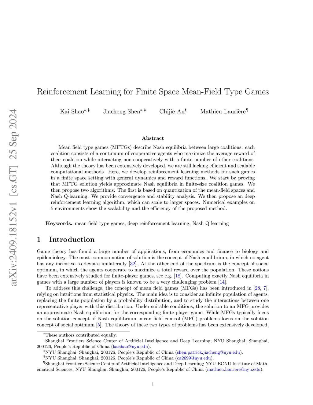 Reinforcement Learning for Finite Space Mean-Field Type Games