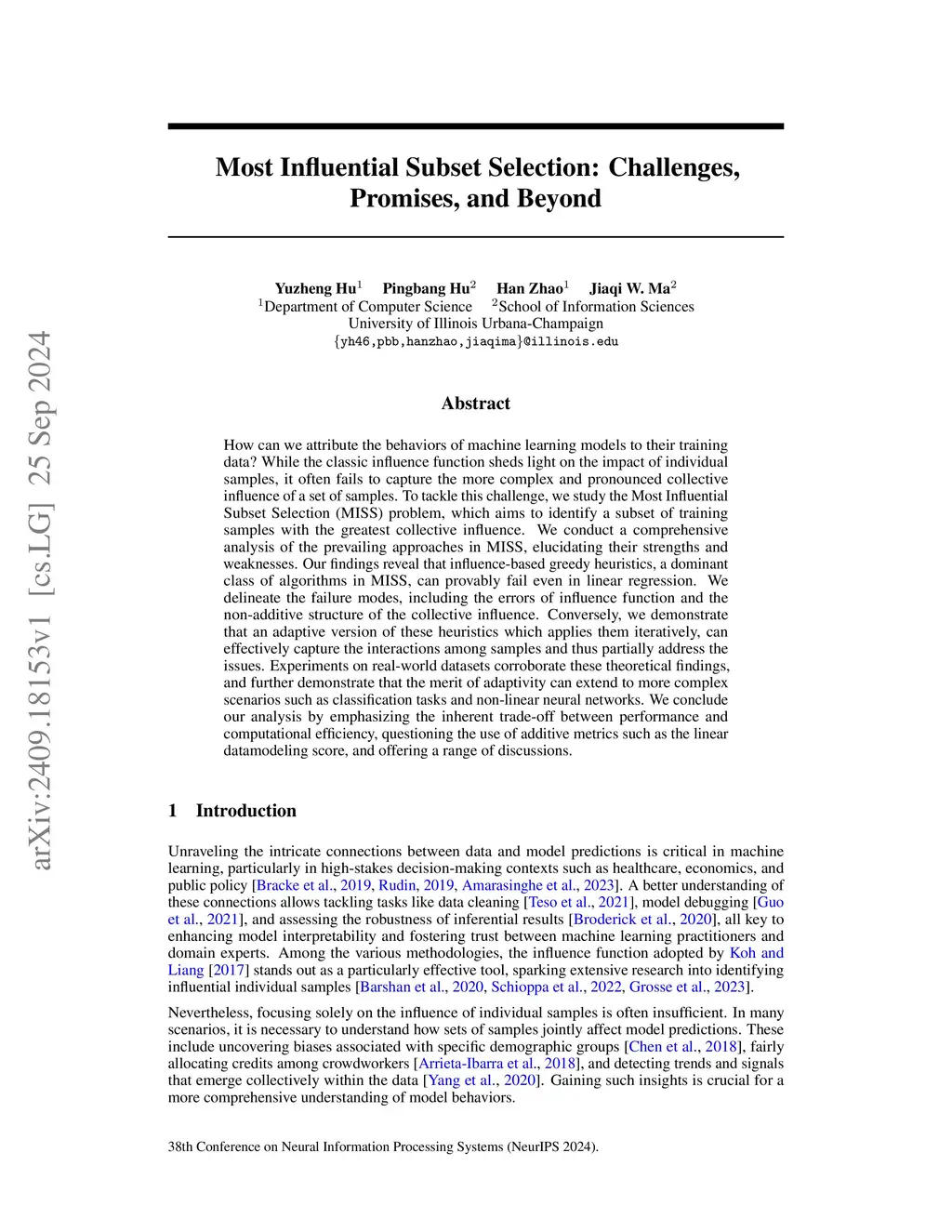 Most Influential Subset Selection: Challenges, Promises, and Beyond