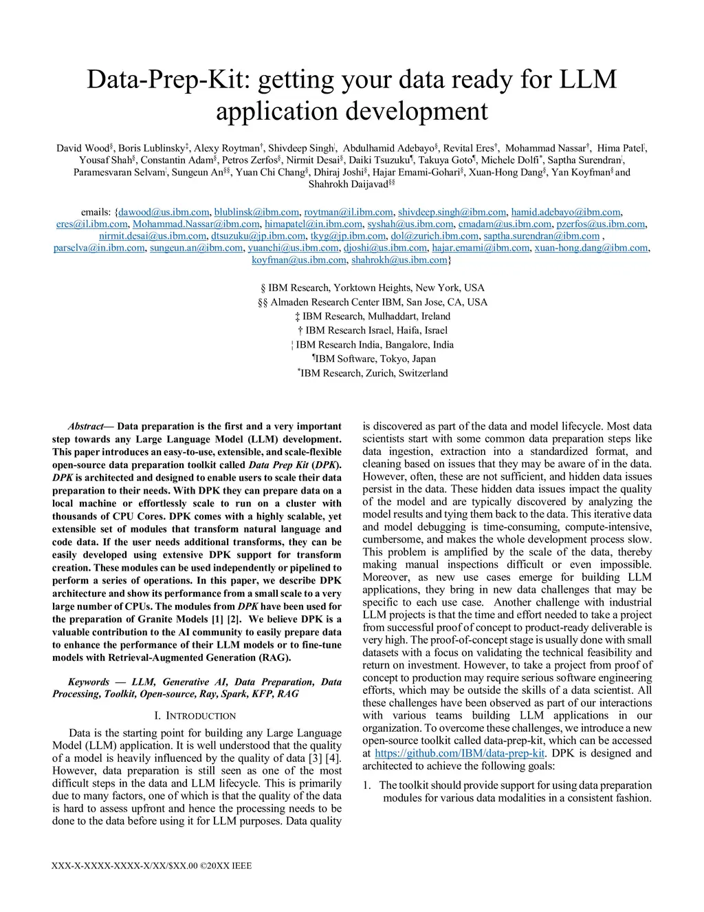 Data preparation is the first and a very important step towards any Large Language Model (LLM) development. This paper introduces an easy-to-use, extensible, and scale-flexible open-source data preparation toolkit called Data Prep Kit (DPK). DPK is architected and designed to enable users to scale their data preparation to their needs. With DPK they can prepare data on a local machine or effortlessly scale to run on a cluster with thousands of CPU Cores. DPK comes with a highly scalable, yet extensible set of modules that transform natural language and code data. If the user needs additional transforms, they can be easily developed using extensive DPK support for transform creation. These modules can be used independently or pipelined to perform a series of operations. In this paper, we describe DPK architecture and show its performance from a small scale to a very large number of CPUs. The modules from DPK have been used for the preparation of Granite Models [1] [2]. We believe DPK is a valuable contribution to the AI community to easily prepare data to enhance the performance of their LLM models or to fine-tune models with Retrieval-Augmented Generation (RAG).