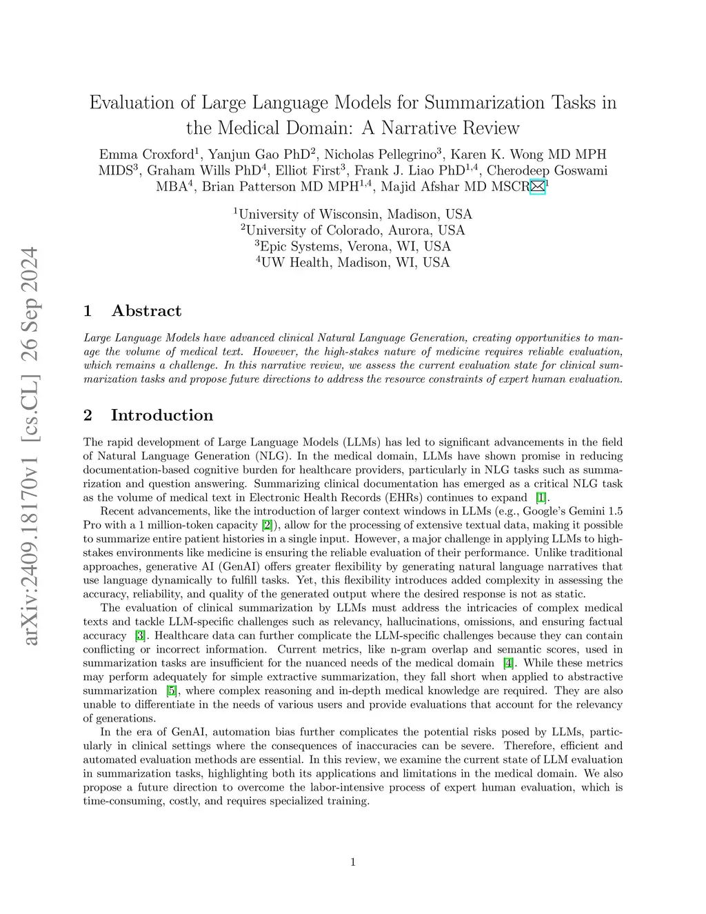 Large Language Models have advanced clinical Natural Language Generation, creating opportunities to manage the volume of medical text. However, the high-stakes nature of medicine requires reliable evaluation, which remains a challenge. In this narrative review, we assess the current evaluation state for clinical summarization tasks and propose future directions to address the resource constraints of expert human evaluation.