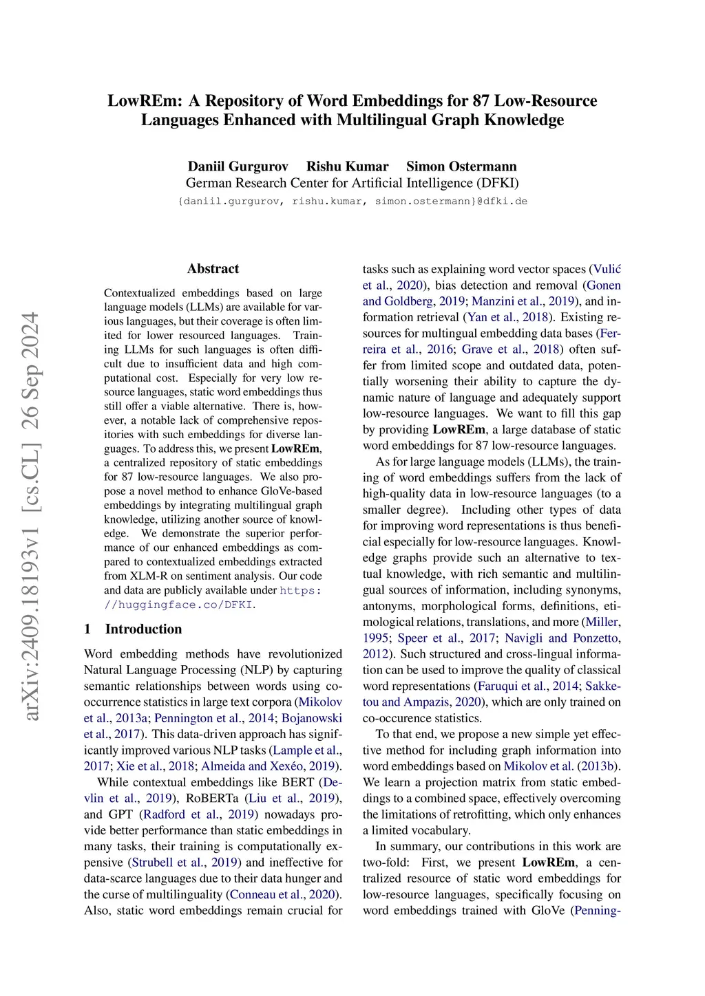 GrEmLIn: A Repository of Green Baseline Embeddings for 87 Low-Resource Languages Injected with Multilingual Graph Knowledge