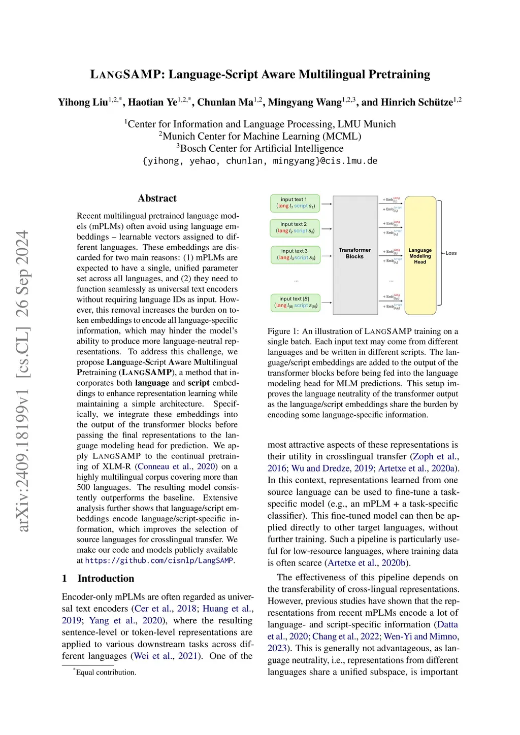 LangSAMP: Language-Script Aware Multilingual Pretraining