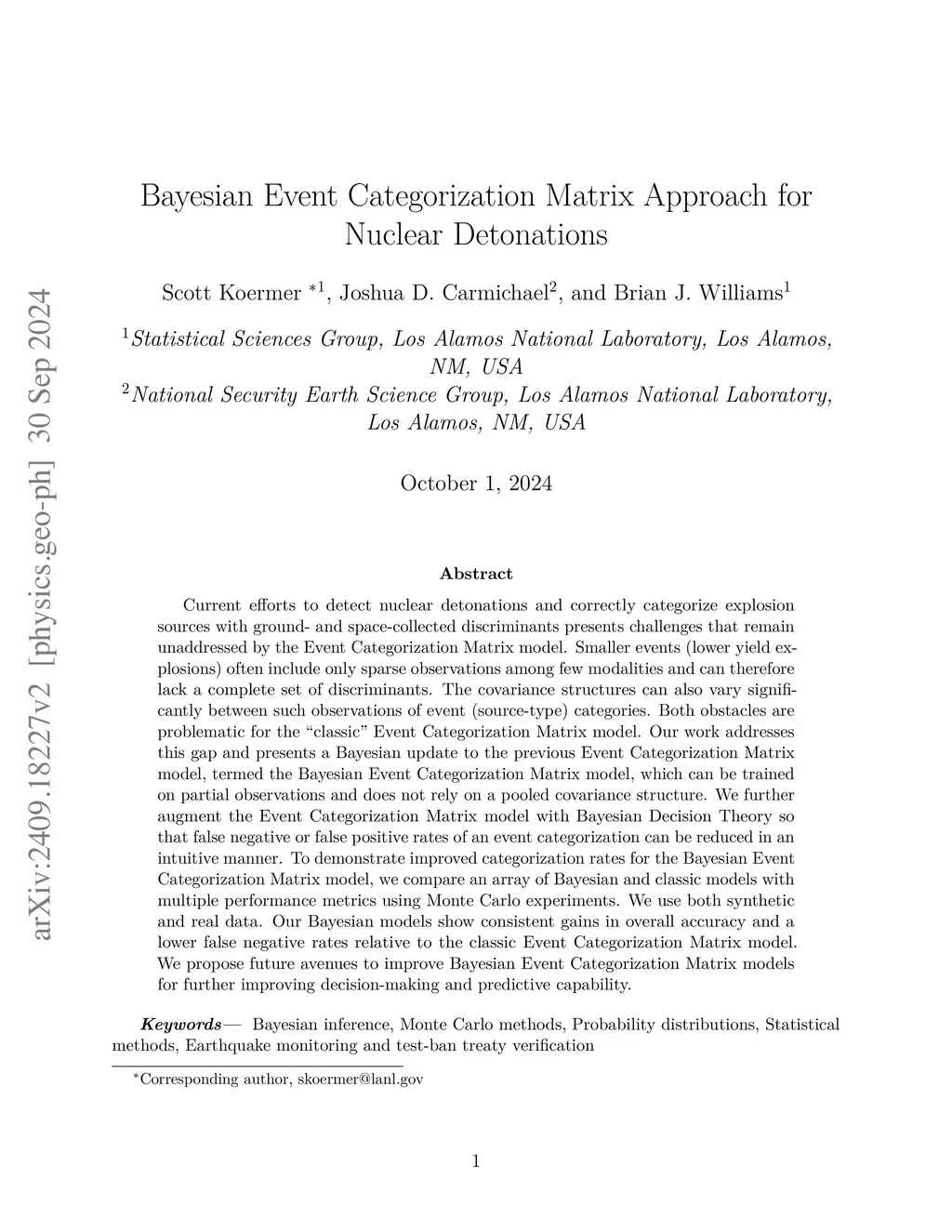 Bayesian Event Categorization Matrix Approach for Explosion Monitoring