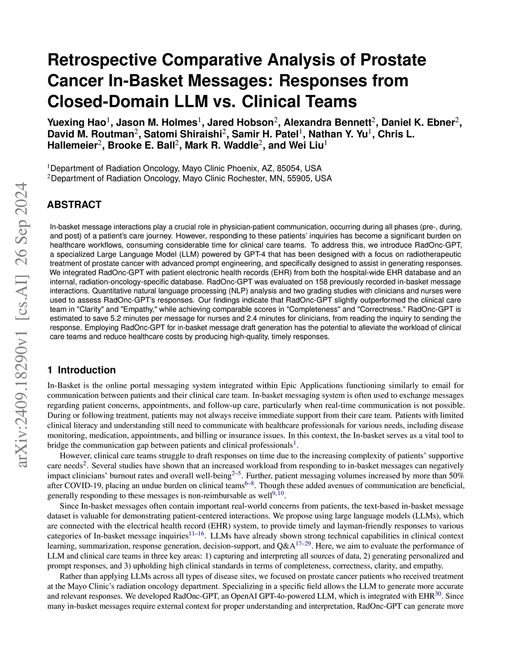 Messages: Responses from Closed-Domain LLM vs. Clinical Teams