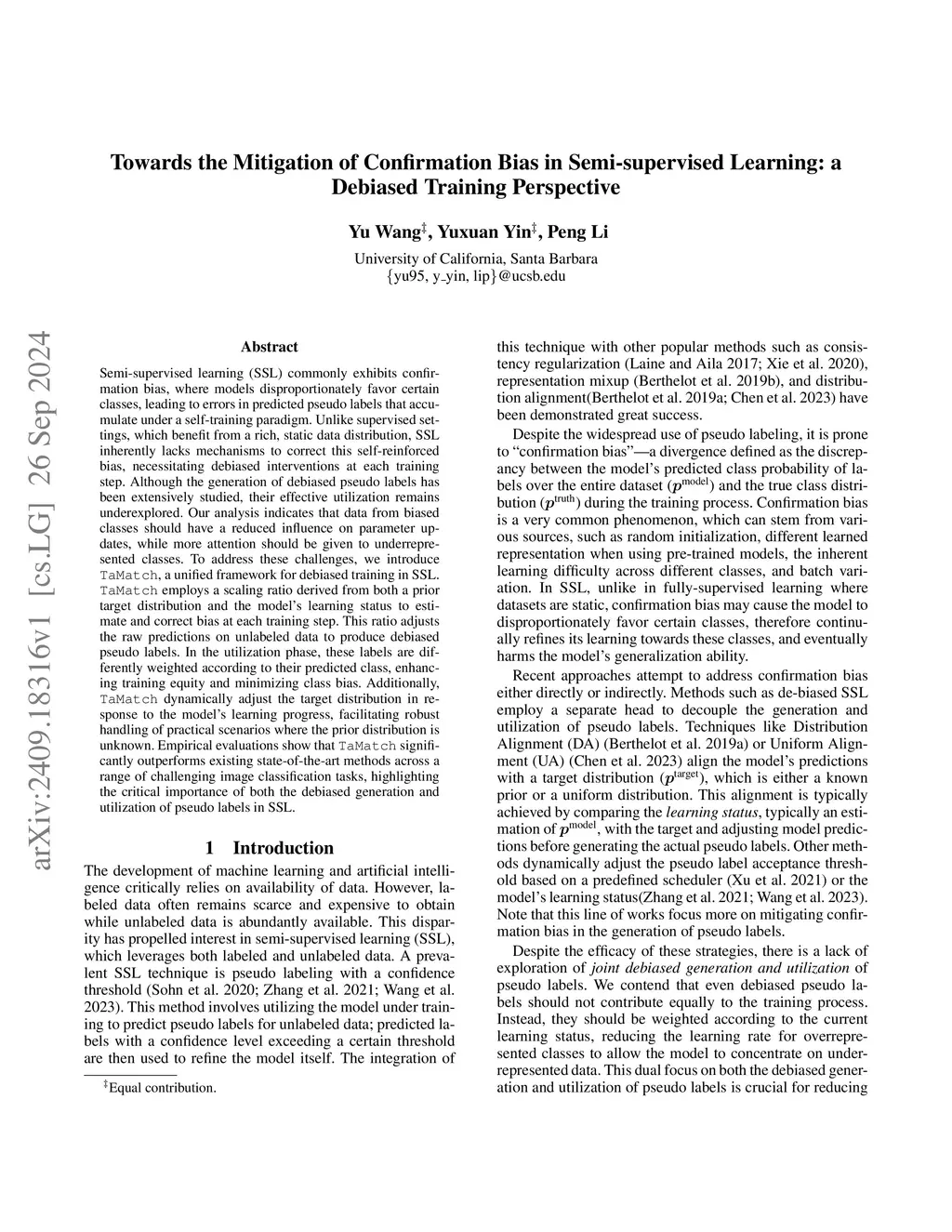 Semi-supervised learning (SSL) commonly exhibits confirmation bias, where models disproportionately favor certain classes, leading to errors in predicted pseudo labels that accumulate under a self-training paradigm. Unlike supervised settings, which benefit from a rich, static data distribution, SSL inherently lacks mechanisms to correct this self-reinforced bias, necessitating debiased interventions at each training step. Although the generation of debiased pseudo labels has been extensively studied, their effective utilization remains underexplored. Our analysis indicates that data from biased classes should have a reduced influence on parameter updates, while more attention should be given to underrepresented classes. To address these challenges, we introduce TaMatch, a unified framework for debiased training in SSL. TaMatch employs a scaling ratio derived from both a prior target distribution and the model's learning status to estimate and correct bias at each training step. This ratio adjusts the raw predictions on unlabeled data to produce debiased pseudo labels. In the utilization phase, these labels are differently weighted according to their predicted class, enhancing training equity and minimizing class bias. Additionally, TaMatch dynamically adjust the target distribution in response to the model's learning progress, facilitating robust handling of practical scenarios where the prior distribution is unknown. Empirical evaluations show that TaMatch significantly outperforms existing state-of-the-art methods across a range of challenging image classification tasks, highlighting the critical importance of both the debiased generation and utilization of pseudo labels in SSL.