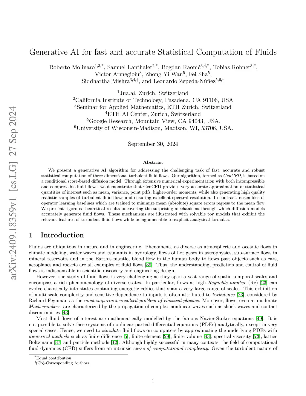 Generative AI for fast and accurate statistical computation of fluids