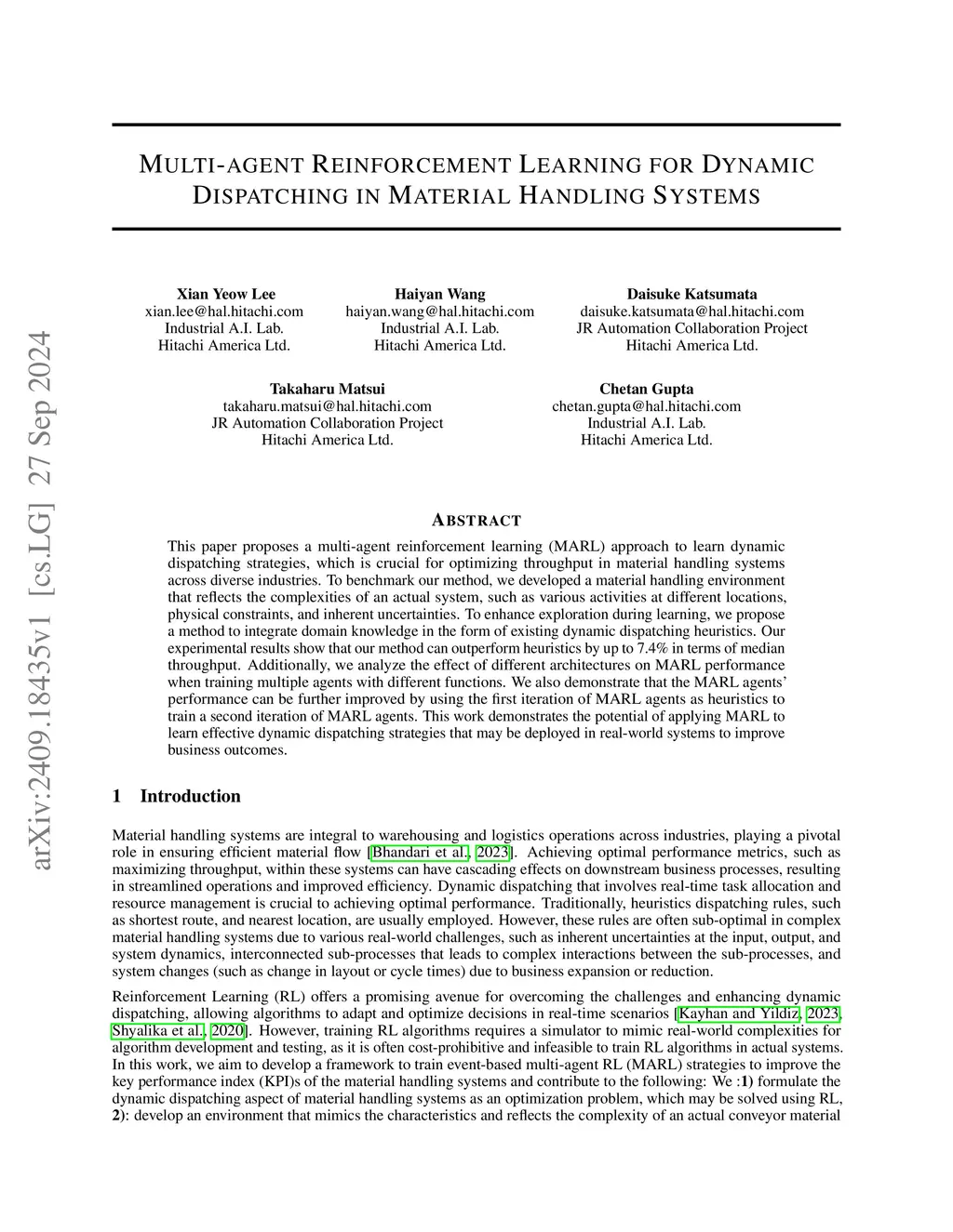 Multi-agent Reinforcement Learning for Dynamic Dispatching in Material