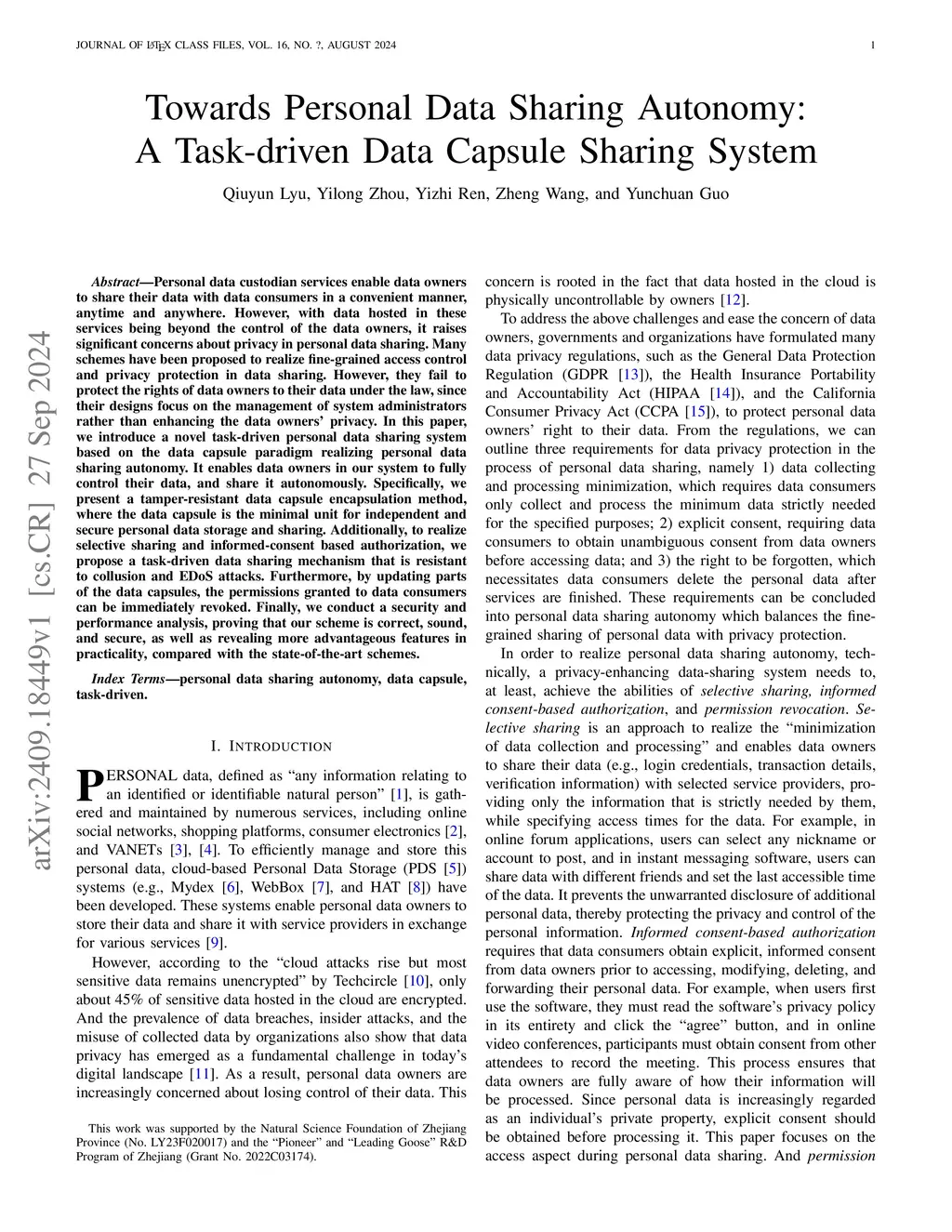 Towards Personal Data Sharing Autonomy:A Task-driven Data Capsule