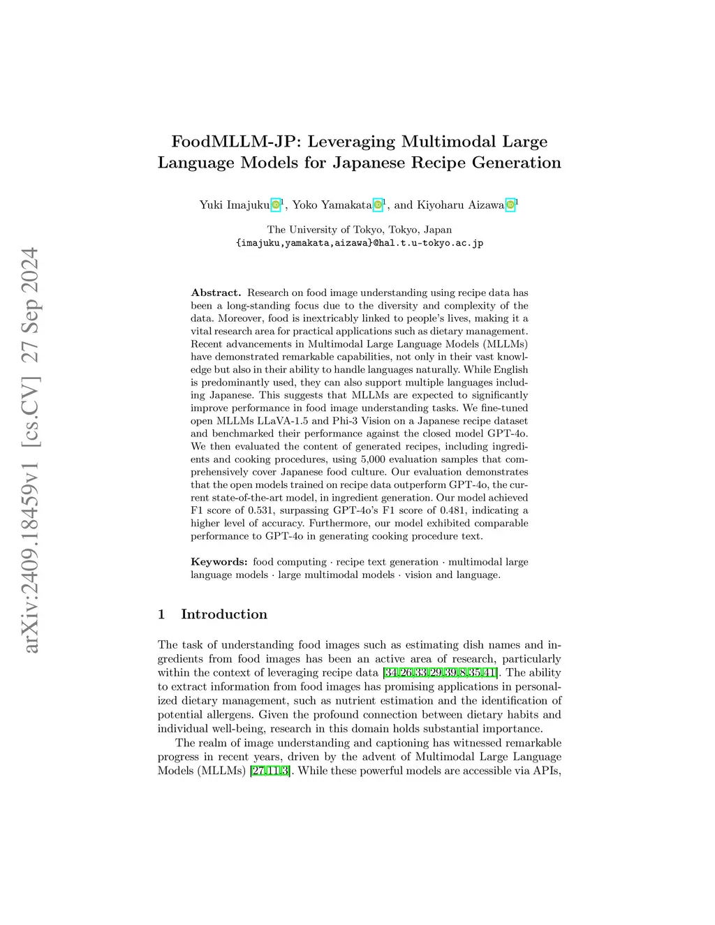 FoodMLLM-JP: Leveraging Multimodal Large Language Models for Japanese Recipe Generation