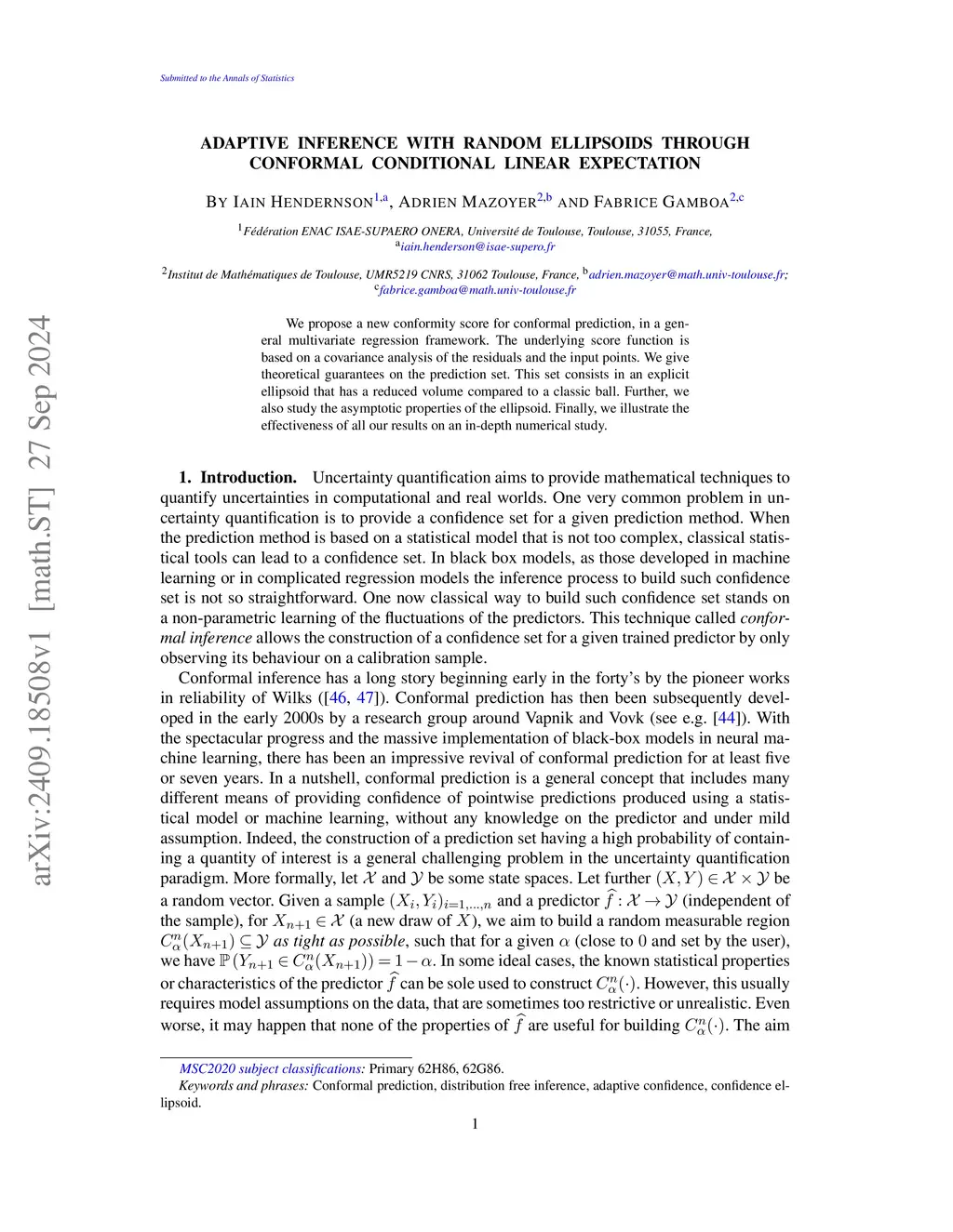 Adaptive inference with random ellipsoids through Conformal Conditional