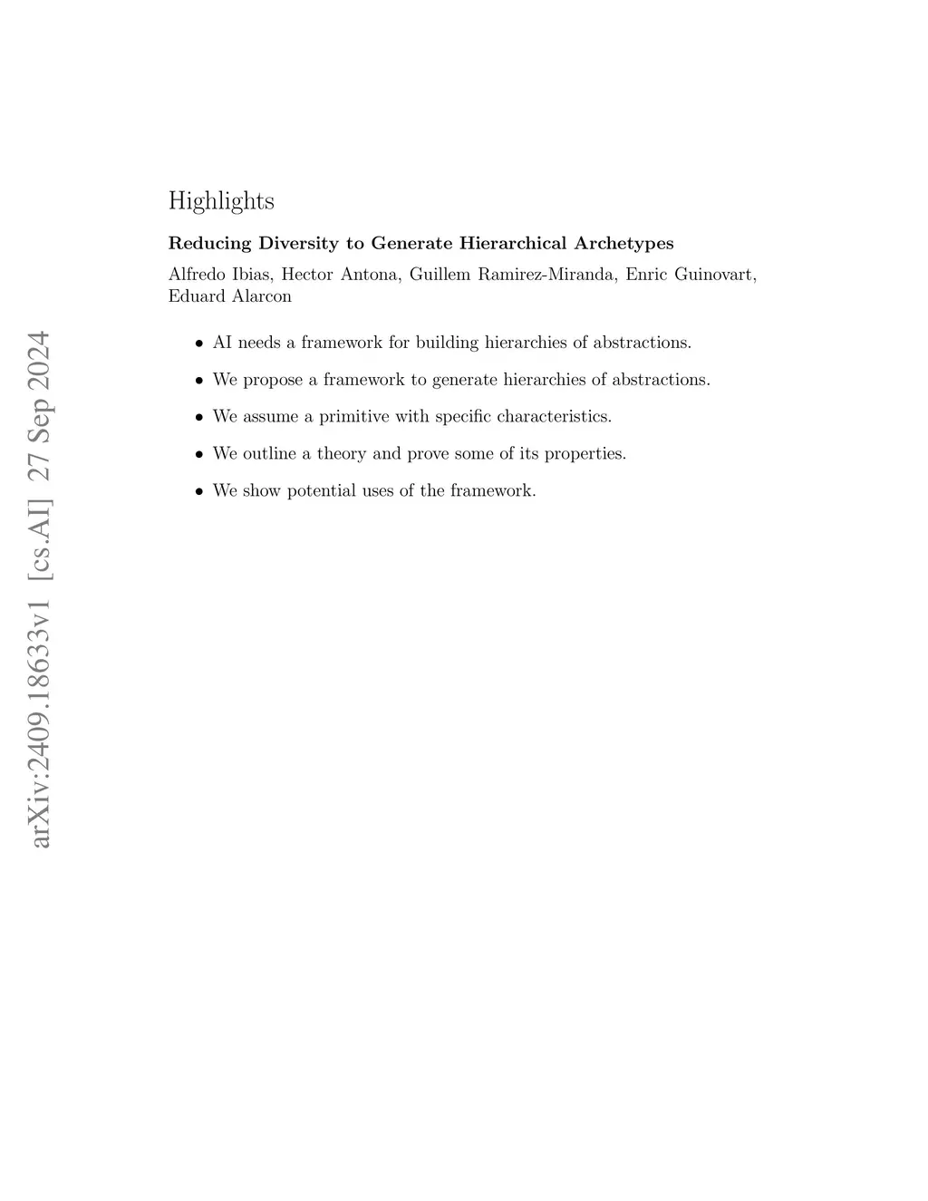 The Artificial Intelligence field seldom address the development of a fundamental building piece: a framework, methodology or algorithm to automatically build hierarchies of abstractions. This is a key requirement in order to build intelligent behaviour, as recent neuroscience studies clearly expose. In this paper we present a primitive-based framework to automatically generate hierarchies of constructive archetypes, as a theory of how to generate hierarchies of abstractions. We assume the existence of a primitive with very specific characteristics, and we develop our framework over it. We prove the effectiveness of our framework through mathematical definitions and proofs. Finally, we give a few insights about potential uses of our framework and the expected results.