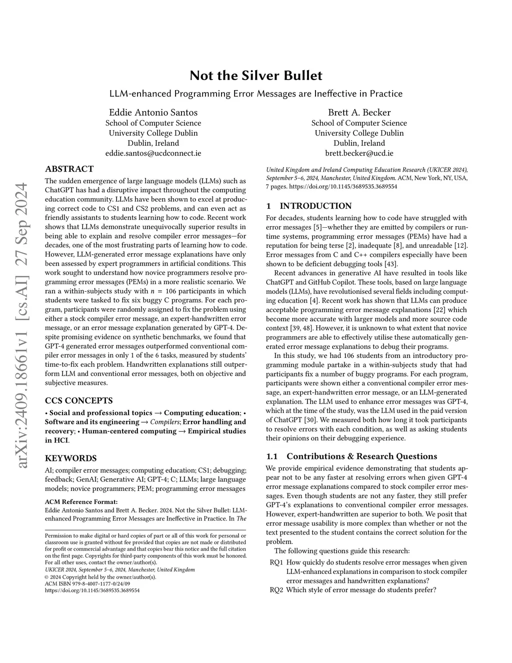 Not the Silver Bullet: LLM-enhanced Programming Error Messages are