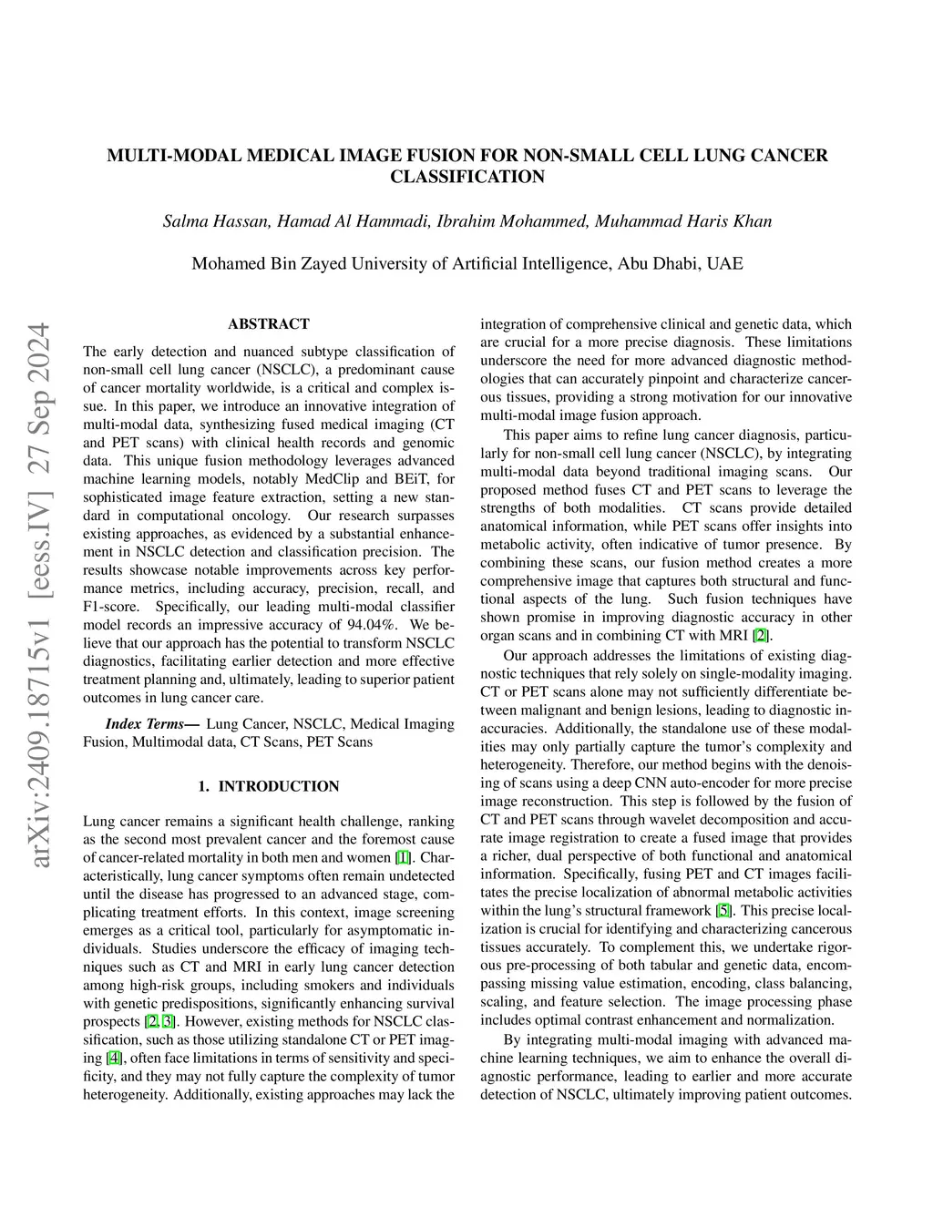 The early detection and nuanced subtype classification of non-small cell lung cancer (NSCLC), a predominant cause of cancer mortality worldwide, is a critical and complex issue. In this paper, we introduce an innovative integration of multi-modal data, synthesizing fused medical imaging (CT and PET scans) with clinical health records and genomic data. This unique fusion methodology leverages advanced machine learning models, notably MedClip and BEiT, for sophisticated image feature extraction, setting a new standard in computational oncology. Our research surpasses existing approaches, as evidenced by a substantial enhancement in NSCLC detection and classification precision. The results showcase notable improvements across key performance metrics, including accuracy, precision, recall, and F1-score. Specifically, our leading multi-modal classifier model records an impressive accuracy of 94.04%. We believe that our approach has the potential to transform NSCLC diagnostics, facilitating earlier detection and more effective treatment planning and, ultimately, leading to superior patient outcomes in lung cancer care.