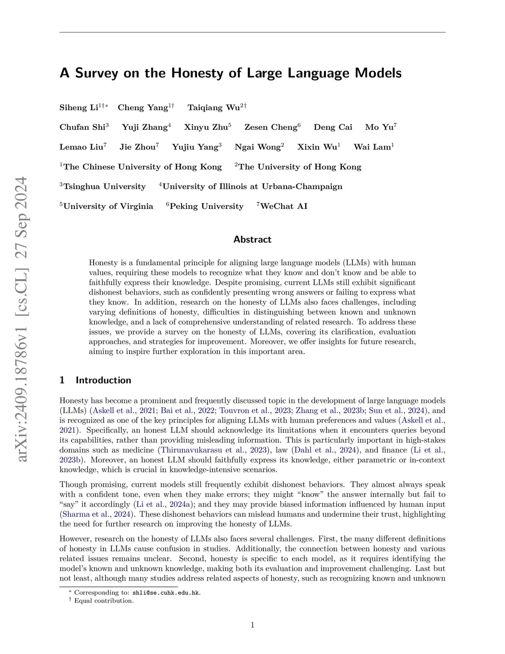 A Survey on the Honesty of Large Language Models
