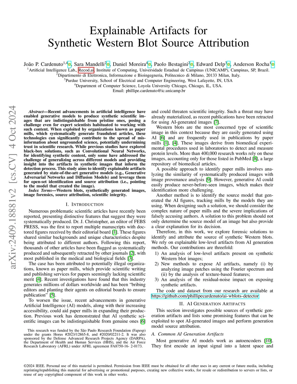 Explainable Artifacts for Synthetic Western Blot Source Attribution