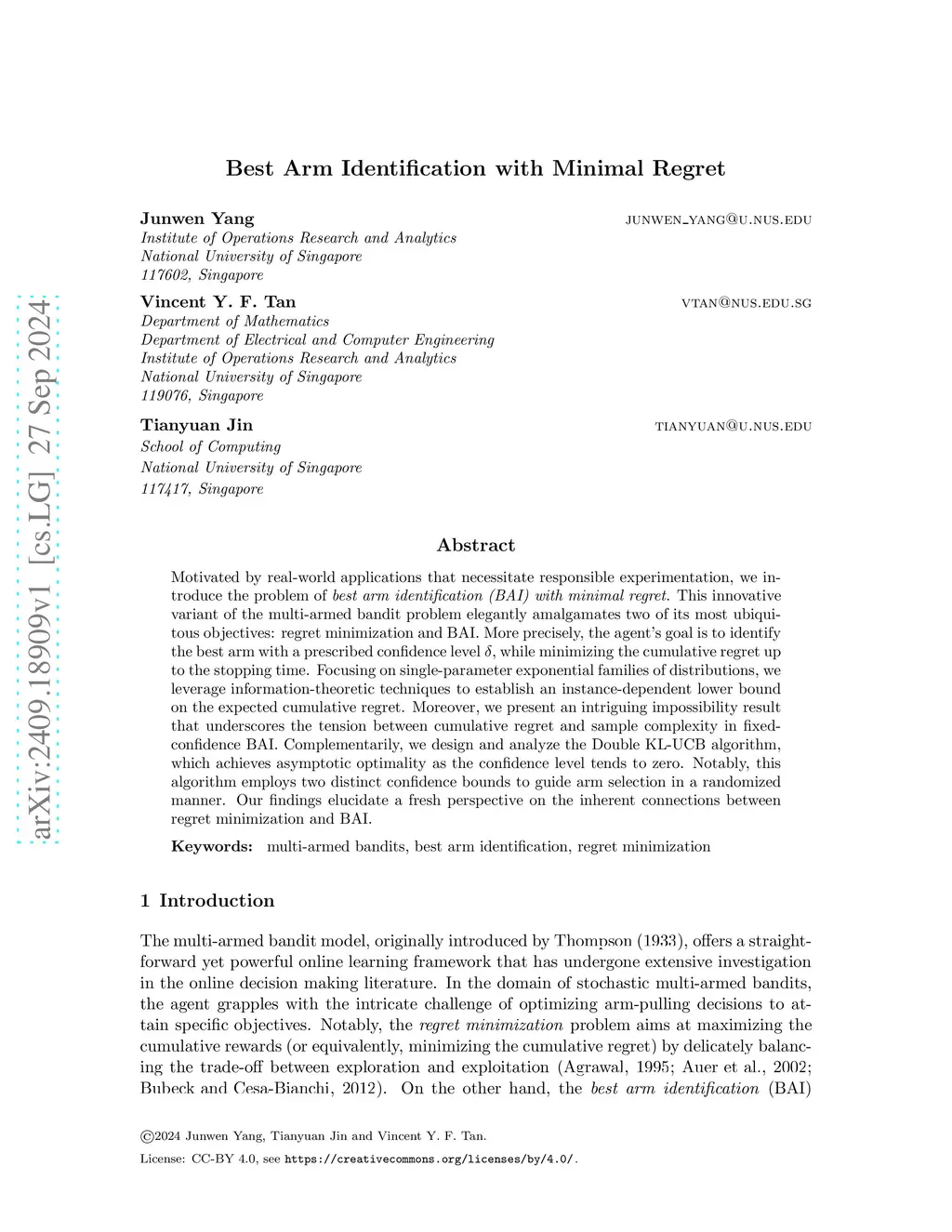 Best Arm Identification with Minimal Regret