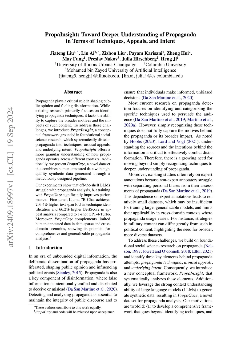 Propaganda plays a critical role in shaping public opinion and fueling disinformation. While existing research primarily focuses on identifying propaganda techniques, it lacks the ability to capture the broader motives and the impacts of such content. To address these challenges, we introduce propainsight, a conceptual framework grounded in foundational social science research, which systematically dissects propaganda into techniques, arousal appeals, and underlying intent. propainsight offers a more granular understanding of how propaganda operates across different contexts. Additionally, we present propagaze, a novel dataset that combines human-annotated data with high-quality synthetic data generated through a meticulously designed pipeline. Our experiments show that off-the-shelf LLMs struggle with propaganda analysis, but training with propagaze significantly improves performance. Fine-tuned Llama-7B-Chat achieves 203.4% higher text span IoU in technique identification and 66.2% higher BertScore in appeal analysis compared to 1-shot GPT-4-Turbo. Moreover, propagaze complements limited human-annotated data in data-sparse and cross-domain scenarios, showing its potential for comprehensive and generalizable propaganda analysis.