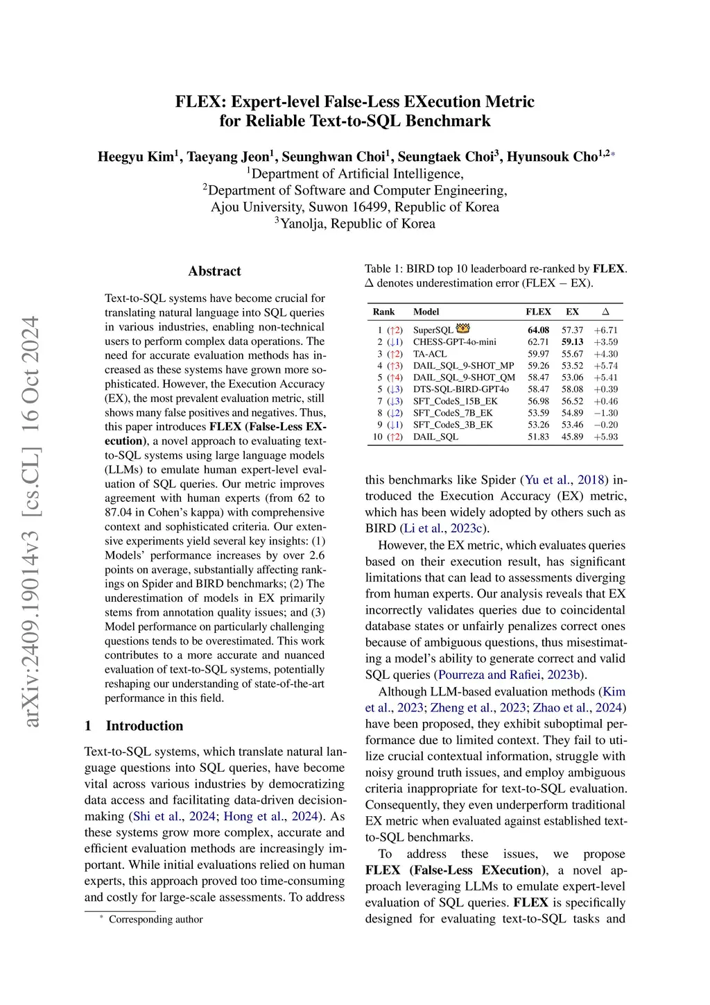 Text-to-SQL systems have become crucial for translating natural language into SQL queries in various industries, enabling non-technical users to perform complex data operations. The need for accurate evaluation methods has increased as these systems have grown more sophisticated. However, the Execution Accuracy (EX), the most prevalent evaluation metric, still shows many false positives and negatives. Thus, this paper introduces FLEX (False-Less EXecution), a novel approach to evaluating text-to-SQL systems using large language models (LLMs) to emulate human expert-level evaluation of SQL queries. Our metric improves agreement with human experts (from 62 to 87.04 in Cohen's kappa) with comprehensive context and sophisticated criteria. Our extensive experiments yield several key insights: (1) Models' performance increases by over 2.6 points on average, substantially affecting rankings on Spider and BIRD benchmarks; (2) The underestimation of models in EX primarily stems from annotation quality issues; and (3) Model performance on particularly challenging questions tends to be overestimated. This work contributes to a more accurate and nuanced evaluation of text-to-SQL systems, potentially reshaping our understanding of state-of-the-art performance in this field.