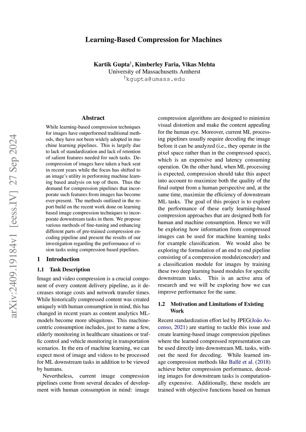 While learning based compression techniques for images have outperformed traditional methods, they have not been widely adopted in machine learning pipelines. This is largely due to lack of standardization and lack of retention of salient features needed for such tasks. Decompression of images have taken a back seat in recent years while the focus has shifted to an image's utility in performing machine learning based analysis on top of them. Thus the demand for compression pipelines that incorporate such features from images has become ever present. The methods outlined in the report build on the recent work done on learning based image compression techniques to incorporate downstream tasks in them. We propose various methods of finetuning and enhancing different parts of pretrained compression encoding pipeline and present the results of our investigation regarding the performance of vision tasks using compression based pipelines.