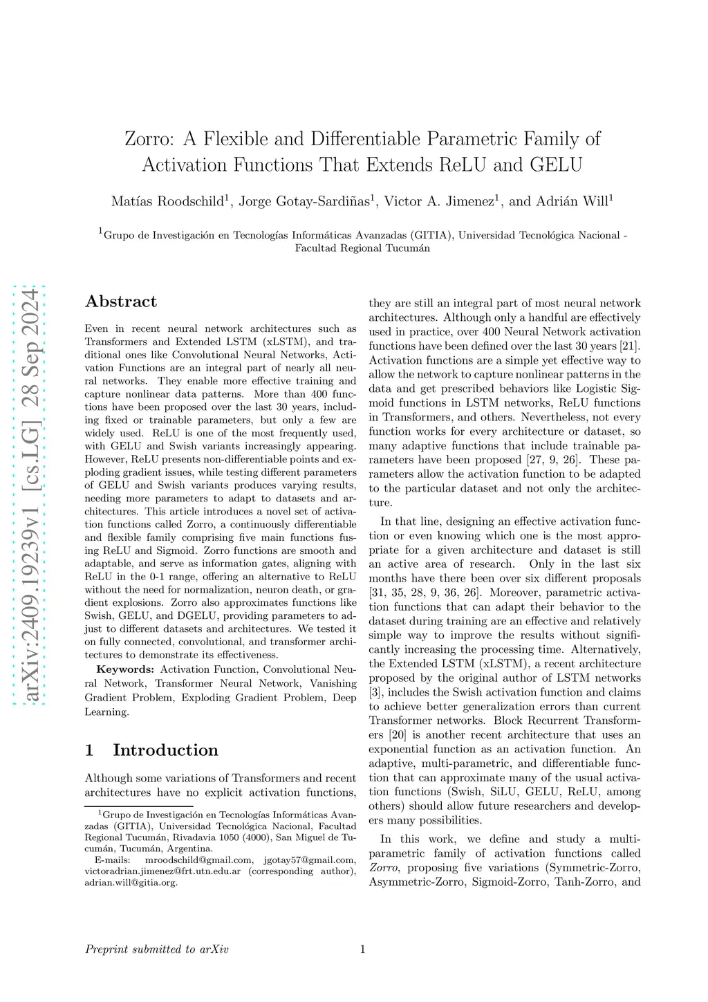 Even in recent neural network architectures such as Transformers and Extended LSTM (xLSTM), and traditional ones like Convolutional Neural Networks, Activation Functions are an integral part of nearly all neural networks. They enable more effective training and capture nonlinear data patterns. More than 400 functions have been proposed over the last 30 years, including fixed or trainable parameters, but only a few are widely used. ReLU is one of the most frequently used, with GELU and Swish variants increasingly appearing. However, ReLU presents non-differentiable points and exploding gradient issues, while testing different parameters of GELU and Swish variants produces varying results, needing more parameters to adapt to datasets and architectures. This article introduces a novel set of activation functions called Zorro, a continuously differentiable and flexible family comprising five main functions fusing ReLU and Sigmoid. Zorro functions are smooth and adaptable, and serve as information gates, aligning with ReLU in the 0-1 range, offering an alternative to ReLU without the need for normalization, neuron death, or gradient explosions. Zorro also approximates functions like Swish, GELU, and DGELU, providing parameters to adjust to different datasets and architectures. We tested it on fully connected, convolutional, and transformer architectures to demonstrate its effectiveness.