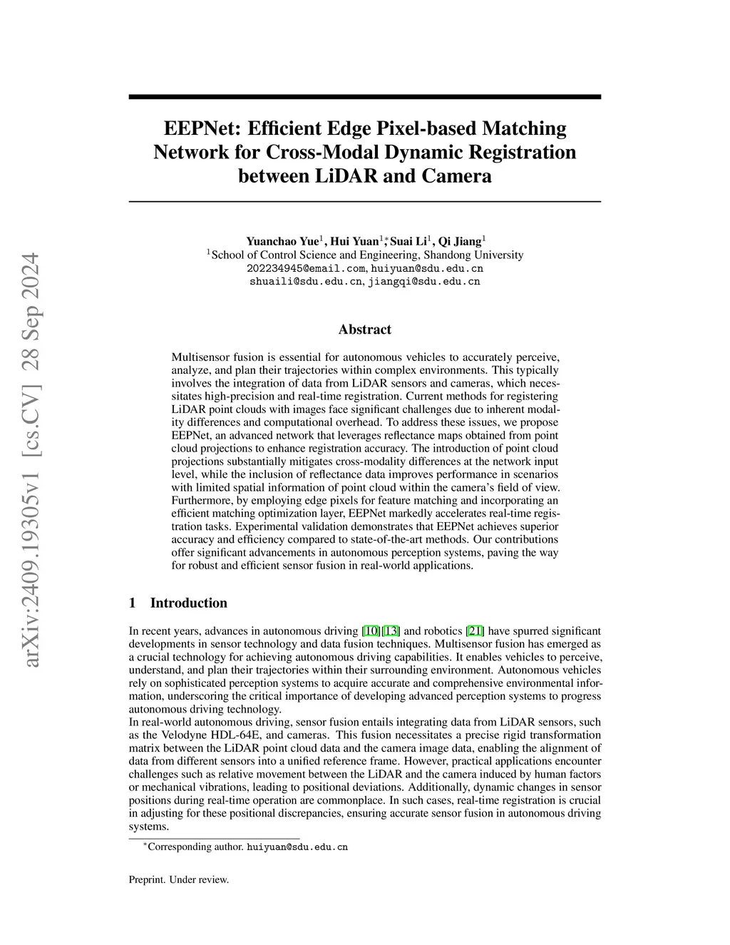 Multisensor fusion is essential for autonomous vehicles to accurately perceive, analyze, and plan their trajectories within complex environments. This typically involves the integration of data from LiDAR sensors and cameras, which necessitates high-precision and real-time registration. Current methods for registering LiDAR point clouds with images face significant challenges due to inherent modality differences and computational overhead. To address these issues, we propose EEPNet, an advanced network that leverages reflectance maps obtained from point cloud projections to enhance registration accuracy. The introduction of point cloud projections substantially mitigates cross-modality differences at the network input level, while the inclusion of reflectance data improves performance in scenarios with limited spatial information of point cloud within the camera's field of view. Furthermore, by employing edge pixels for feature matching and incorporating an efficient matching optimization layer, EEPNet markedly accelerates real-time registration tasks. Experimental validation demonstrates that EEPNet achieves superior accuracy and efficiency compared to state-of-the-art methods. Our contributions offer significant advancements in autonomous perception systems, paving the way for robust and efficient sensor fusion in real-world applications.