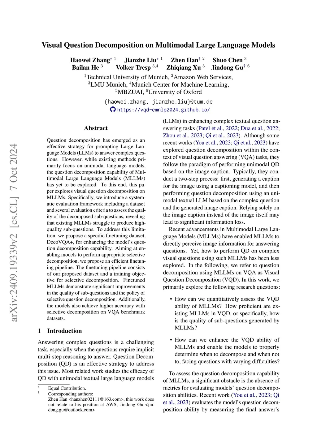 Visual Question Decomposition on Multimodal Large Language Models
