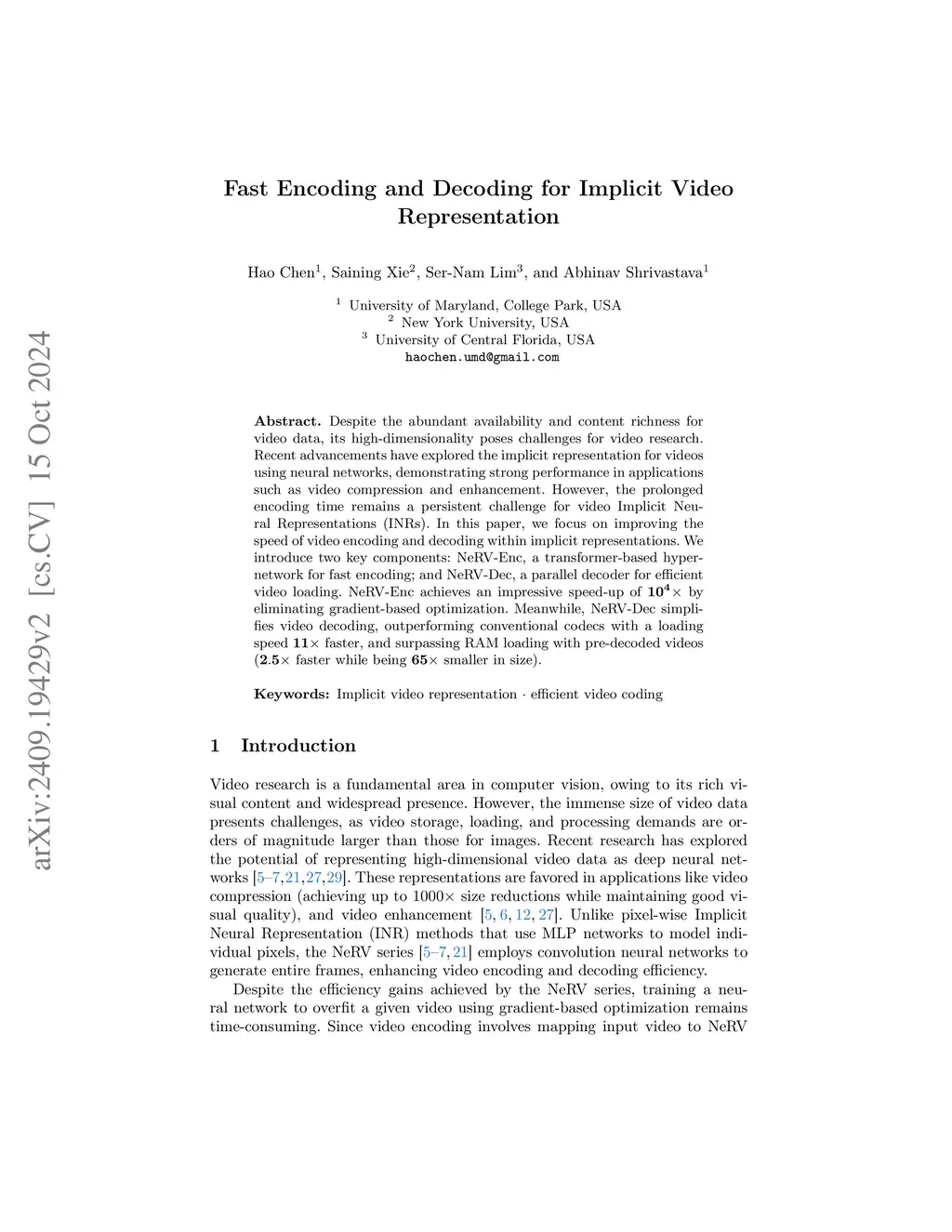Fast Encoding and Decoding for Implicit Video Representation