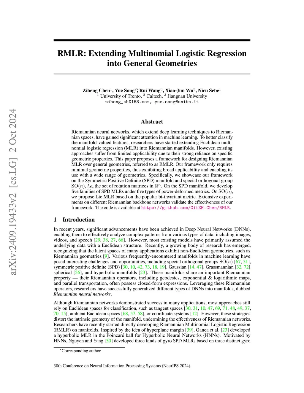 RMLR: Extending Multinomial Logistic Regression into General Geometries
