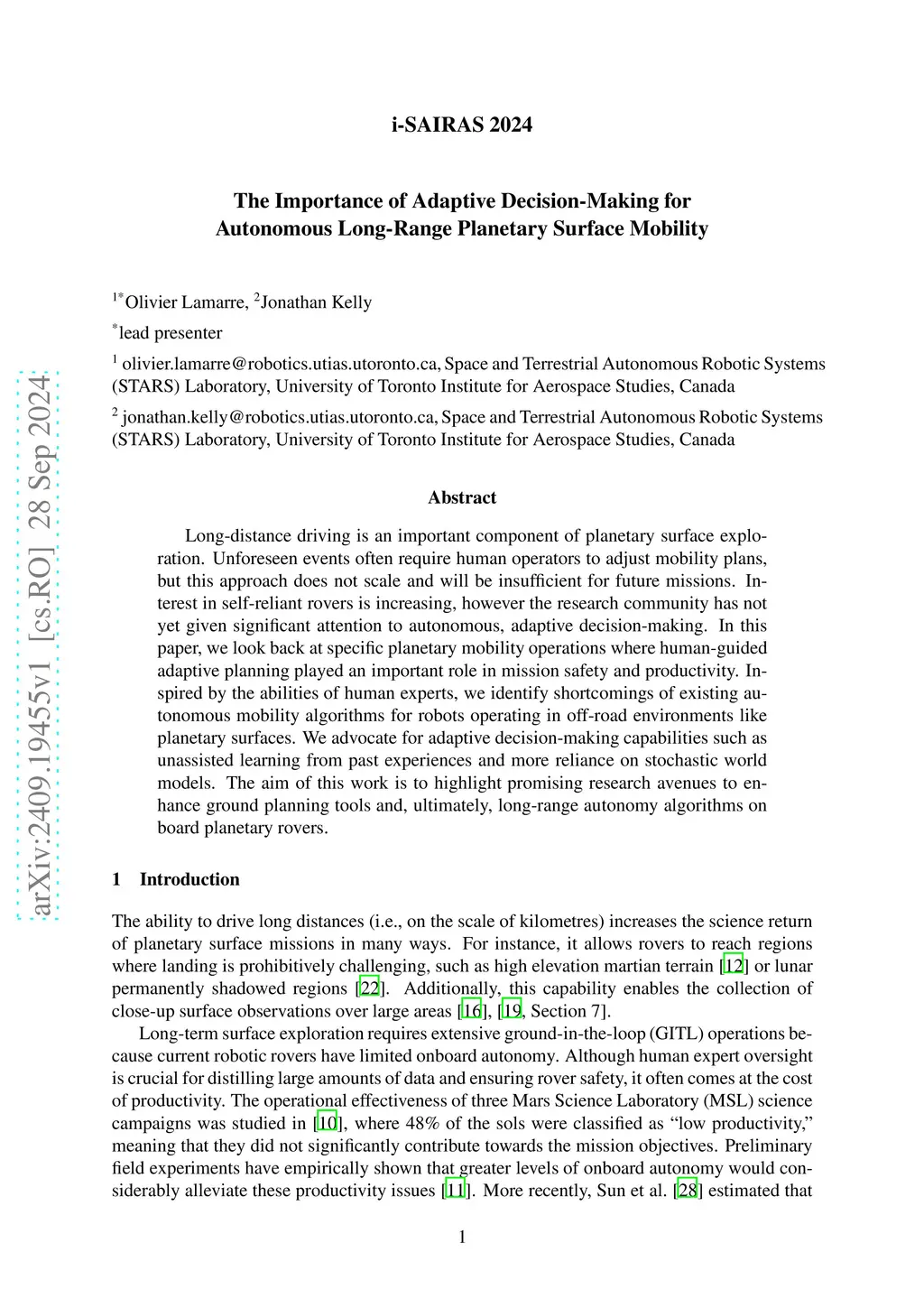 The Importance of Adaptive Decision-Making for Autonomous Long-Range Planetary Surface Mobility