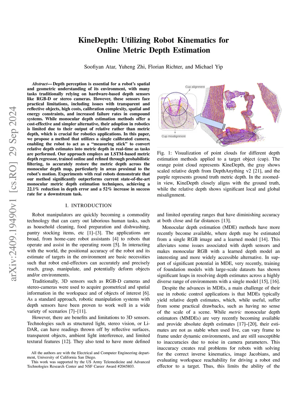 KineDepth: Utilizing Robot Kinematics for Online Metric Depth Estimation