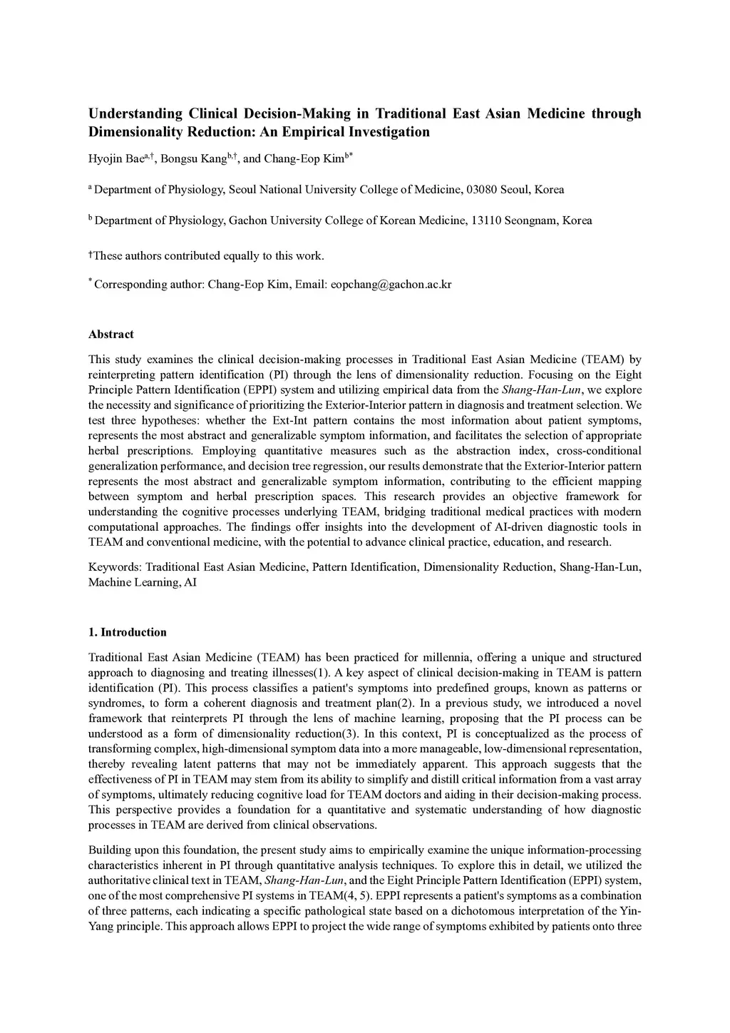This study examines the clinical decision-making processes in Traditional East Asian Medicine (TEAM) by reinterpreting pattern identification (PI) through the lens of dimensionality reduction. Focusing on the Eight Principle Pattern Identification (EPPI) system and utilizing empirical data from the Shang-Han-Lun, we explore the necessity and significance of prioritizing the Exterior-Interior pattern in diagnosis and treatment selection. We test three hypotheses: whether the Ext-Int pattern contains the most information about patient symptoms, represents the most abstract and generalizable symptom information, and facilitates the selection of appropriate herbal prescriptions. Employing quantitative measures such as the abstraction index, cross-conditional generalization performance, and decision tree regression, our results demonstrate that the Exterior-Interior pattern represents the most abstract and generalizable symptom information, contributing to the efficient mapping between symptom and herbal prescription spaces. This research provides an objective framework for understanding the cognitive processes underlying TEAM, bridging traditional medical practices with modern computational approaches. The findings offer insights into the development of AI-driven diagnostic tools in TEAM and conventional medicine, with the potential to advance clinical practice, education, and research.