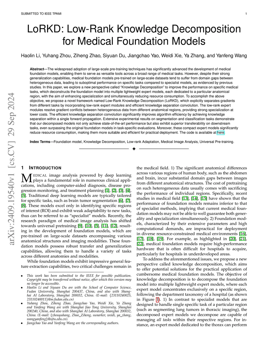 LoRKD: Low-Rank Knowledge Decomposition for Medical Foundation Models