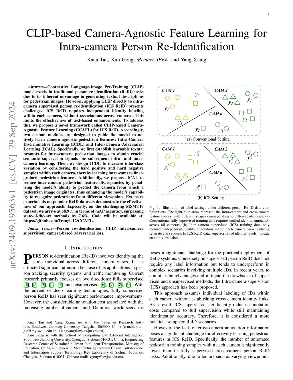 CLIP-based Camera-Agnostic Feature Learning for Intra-camera Person