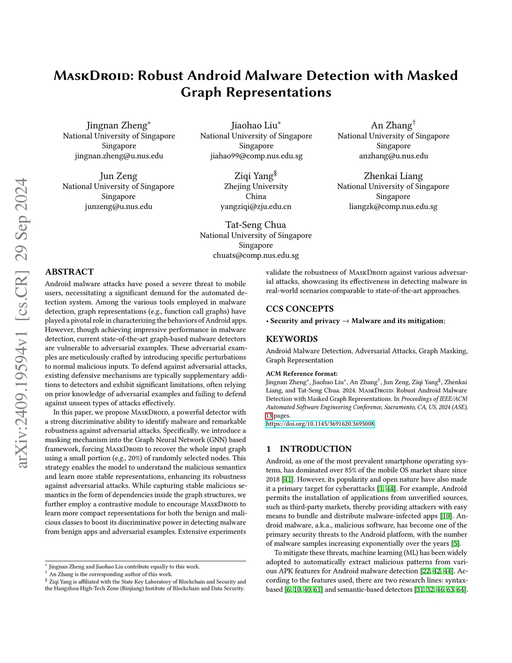 MASKDROID: Robust Android Malware Detection with Masked Graph